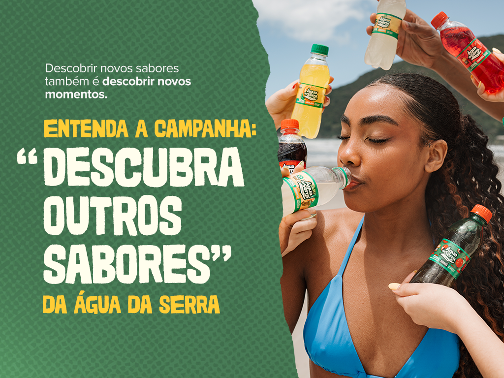 A campanha “Descubra Outros Sabores” destaca principalmente quatro protagonistas da Água da Serra que combinam perfeitamente com os dias quentes: o sabor Cola, Guaraná, Laranjinha Zero e Framboesa.